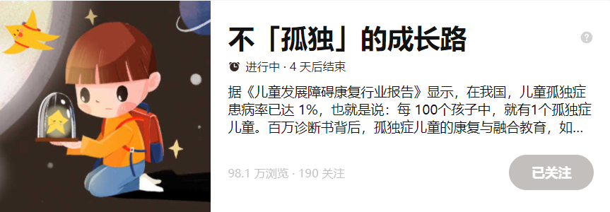 还好,在与时间展开的拉锯战中,家长并不是孤身一人。4月2日,世界孤独症日来临之际,ALSOLIFE与知乎亲子、北大医疗脑健康一起,共同发起知乎圆桌“不「孤独」的成长路”。