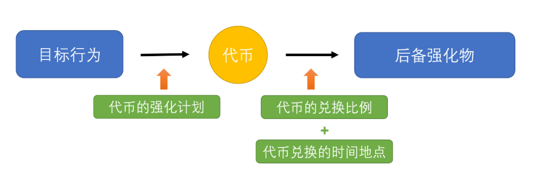 代币是一种泛化制约强化物,本身是价值较小的实体物或者虚拟物,一般是中性刺激,通过与后备强化物的反复配对,成为制约强化物。