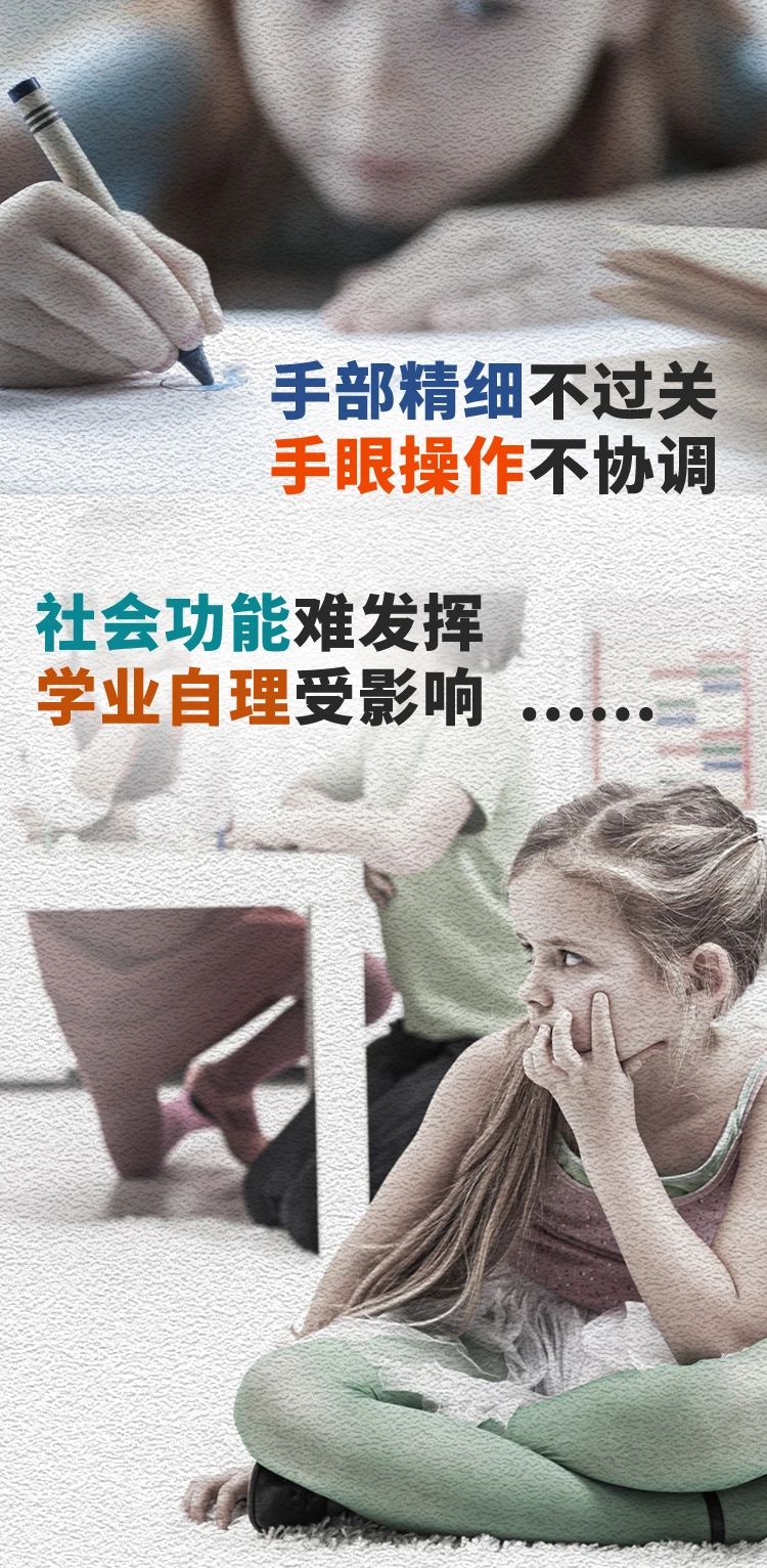 再者,手部精细能力的提升,与孩子感知觉水平的提升也是息息相关的。恰当的手部操作训练,可以大幅度地帮孩子矫正本体觉,促进视知觉区辨能力,让手眼脑相互协调发展。这样才能为孩子未来的书写技能、注意力水平、学业发展,奠定良好的基础。