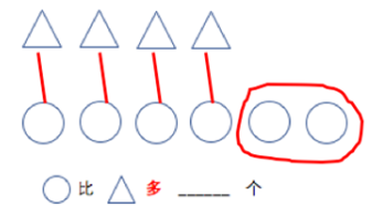 ※ 方法1:采用之前在阶段1中介绍的一一对应的方法让孩子数出差别数量,如下图: